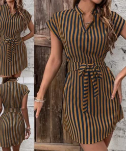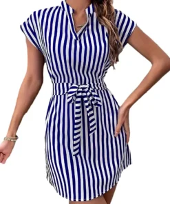 成为第一个“Ohsisa 2025 Summer Fashion Women Dresses Printed Stand Collar V-neck Sleeveless Striped Waist Lace up Belt Casual Dress” 的评价者 取消回复